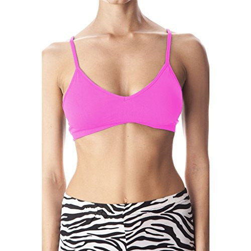 Femine seamless sports bra with removable padding. Straps are adjustble, can choose between criss cross or straight. A one size fits most. Measurements when layed flat; Band: 10.5" Height (of the cup) 7.5".
