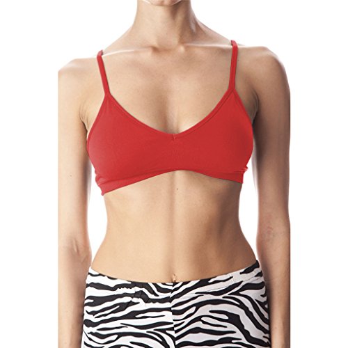 Femine seamless sports bra with removable padding. Straps are adjustble, can choose between criss cross or straight. A one size fits most. Measurements when layed flat; Band: 10.5" Height (of the cup) 7.5".