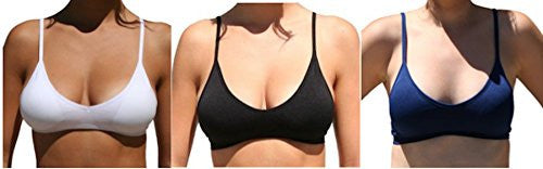 Seamless Plunging V-Neck Sport Bra - White and Seamless Plunging V-Neck Sport Bra - Black and Seamless Plunging V-Neck Sport Bra - Navy, One Size (Pack of 3)
