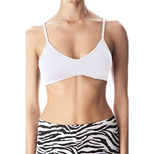 Femine seamless sports bra with removable padding. Straps are adjustble, can choose between criss cross or straight. A one size fits most. Measurements when layed flat; Band: 10.5" Height (of the cup) 7.5".