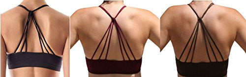 These sexy strappy bras are form-fitting, comfortable and supportive. Product Features: Seamless No wire, soft cup bra one size fits almost every body. Comfortably fits sizes 32A to 36D. Removable pads Adjustable straps, ruching at center for bust shape. Straps on back offer a unique, fun and eye-catching design. This bra is sexy and fashionable, looks great alone or under a tank that shows off the cute design in the back! An essential item to complete your wardrobe!