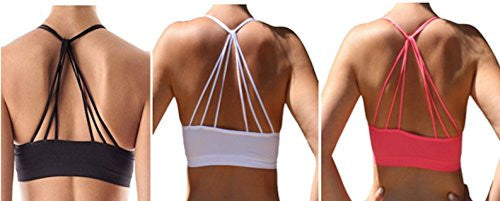 These sexy strappy bras are form-fitting, comfortable and supportive. Product Features: Seamless No wire, soft cup bra one size fits almost every body. Comfortably fits sizes 32A to 36D. Removable pads Adjustable straps, ruching at center for bust shape. Straps on back offer a unique, fun and eye-catching design. This bra is sexy and fashionable, looks great alone or under a tank that shows off the cute design in the back! An essential item to complete your wardrobe!