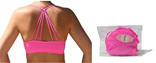 These sexy strappy bras are form-fitting, comfortable and supportive. Product Features: Seamless No wire, soft cup bra one size fits almost every body. Comfortably fits sizes 32A to 36D. Removable pads Adjustable straps, ruching at center for bust shape. Straps on back offer a unique, fun and eye-catching design. This bra is sexy and fashionable, looks great alone or under a tank that shows off the cute design in the back! An essential item to complete your wardrobe!