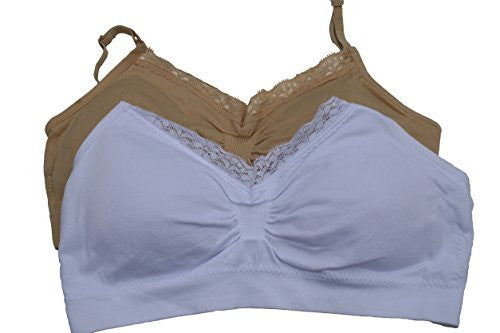 • Seamless Top with Lace Trim - White and Seamless Top with Lace Trim Nude, One Size (Pack of 2)