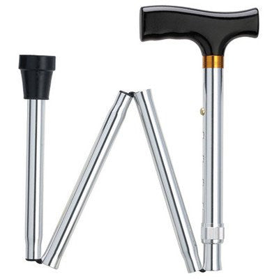 9052311 Color: Silver Features: -With rubber tip. -Solid wood Fritz handle and aluminum security nut for added safety. -Push button adjustment allows for height to range. -Great travel accessory item. -Harvy canes have a weight capacity of 250 lbs. Product Type: -Single point cane. Age Group: -Adult. Foldable: -Yes. Release Type: -Button. Dimensions: -33'' - 37'' H x 0.75'' - 0.88'' W, 0.8 lb. Overall Product Weight: -0.8 lbs. Overall Height - Top to Bottom: -37". Overall Width - Side to Side: -0.75".