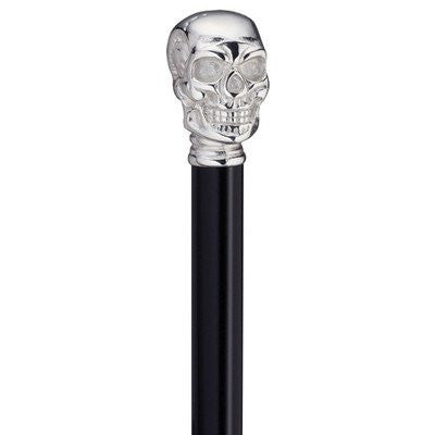 Skull handle with chrome finish on brass, black hardwood shaft.