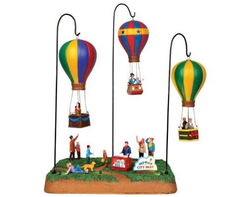 SKY-HIGH PARK Part of the Lemax Carnival collection. Decorative carnival ride. Balloon rides. Animated-balloons rotate. Fun amusement park decor. 4.5V Power Adaptor included. Power switch. May be used with Carole Towne, Coventry Cove, Lemax Christmas Village or other brands of collectible buildings and accessories. Lemax 44763
