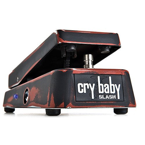 Dunlop worked closely with Slash to design the Slash Cry Baby Classic wah pedal, custom-voiced for the raw, expressive sound that influenced a generation of guitar players. Throughout his career, Slash has used the Cry Baby to create his trademark epic solos that he weaves into his groundbreaking gritty, blues-influenced rock. Tuned to a lower frequency and featuring a custom-wound resonance inductor, this wah has a huge dynamic range and a wide sweep. Two side-mounted blue LEDs indicate ON/OFF status, viewable from any angle onstage, so you can always tell when the effect is on. The Slash Cry Baby Classic also features high quality components, such as a true hardwire bypass switch and a long-life pot. Housed in a heavy-duty die-cast casing featuring custom Slash graphics, this wah is as killer looking as it is sounding.