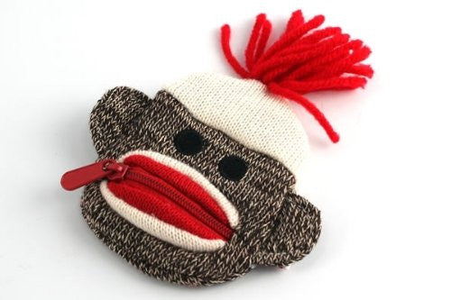 Our Sock Monkey would love to carry your coins! Just unzip Sock Monkey?s happy red mouth to retrieve your stuff. Our high quality cloth Monkey features red yarn hair and a large happy Sock Monkey face with a cute metal zipper mouth.