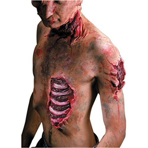 Includes latex exposed rib prosthetic, spirit gum and remover. Also includes instructions and makeup suggestions.