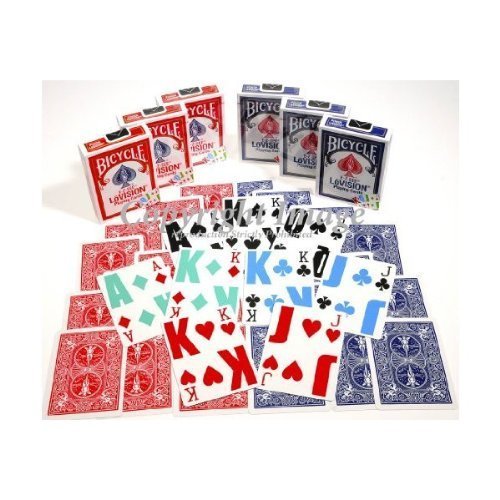 This is a Bundle of Six decks of EZ-See Low Vision Playing Cards. Three deck have red backs and three decks have blue backings.Made here in the United States.