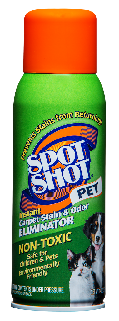 Spot Shot stain remover is formulated to work in carpet deodorizer, stain remover applications. Spot Shot 009208 Non-Toxic Pet Instant Carpet Stain Remover, 14 oz Aerosol. Spot Shot is the brand name of the product.