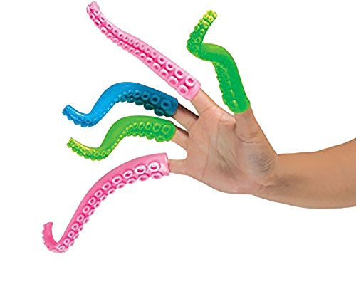 Plain old fingers can get so boring. Mix it up with these Squidgits tentacle fingers! Each tentacle fits snugly on most fingers, and the excellent detailing will have your friends thinking your turning into a giant squid! Each order comes with 5 tentacles of assorted colors.