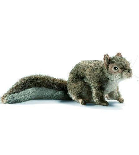HANSA - Gray Sitting Squirrel Plush Toy - This Hansa Gray Squirrel is part of the Hansa Woodland Animals Collection. The Gray Squirrel's approximate dimensions are 5.5 L x 3.5 W x 8 H. Suitable for ages 3 years old and up. When you hold these wonderfully ''life-like'' animals, you will see and feel HANSA's emphasis on quality, which is a result of careful attention to design, custom fabric selection, cutting, sewing, stuffing, eye placement, feature creation, framing, air brushing and finishing. Since each animal is hand sewn, there will be slight variations in appearance. WARNING: CHOKING HAZARD -- Small parts. Not for children under 3 yrs.