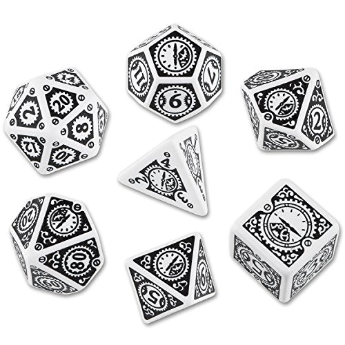 QWSSSTC02 White And Black Steampunk Clockwork Dice Set Of Seven Q-Workshop