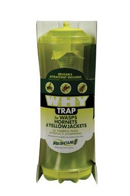 (3 TRAPS) The Rescue WHY (Wasp, Hornet, Yellow Jacket) non-toxic reusable trap uses no pesticides! Catches 18 species of stinging pest insects in one trap! Environmentally responsible, no killing agents - insects die naturally, requires no additional food bait. In Spring, catches queens before they build nests; catches workers from summer through fall. Will not harm beneficial insects. Double-chambered, triple attractant design prevents wasps, hornets and yellow jackets from escaping. Upper chamber is filled with liquid and the insect drowns. Lower chamber is designed to prevent escape and insect dehydrates. Best to place trap at least 20 feet from the nest and away from your activity site. Durable construction holds up for multiple seasons. Comes with 2-week attractant supply. Shelf life: Does not expire. Use with Rescue Universal Rod Trap Stand. Made in USA. Manufacturer: Sterling International This trap catches: 4 species of paper wasps: Paper Wasp (Polistes fuscatus), European Paper Wasp (Polistes dominulus), Red Wasp (Polistes annularis), Golden Paper Wasp (Polistes aurifer); 2 types of hornets: Bald-faced Hornet (Dolichovespula maculata), European Hornet (Vespa crabro); 12 species of yellow jackets: Aerial Yellow Jacket (Dolichovespula arenaria), Black Jacket (Vespula consobrina), California Yellow Jacket (Vespula sulphurea), Common Yellow Jacket (Vespula vulgaris), Eastern Yellow Jacket (Vespula maculifrons), Forest Yellow Jacket (Vespula acadica), German Yellow Jacket (Vespula germanica), Northeastern Yellow Jacket (Vespula vidua), Prairie Yellow Jacket (Vespula atropilosa), Southern Yellow Jacket (Vespula squamosa), Transition Yellow Jacket (Vespula flavopilosa), Western Yellow Jacket (Vespula pensylvanica).