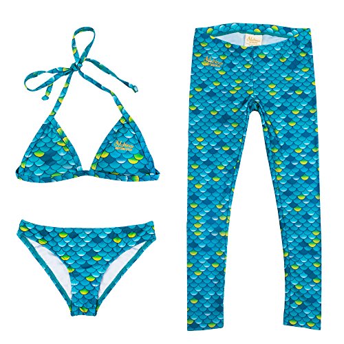 To complete the mermaid look in the safest possible way, and because of course the Mer are never complete without their scales, the mermaid Mahina has designed her own Mermaid scale print with the most stunning gradients of colors. Each MerWear swim set includes one MerBabe set with bikini top and bottom, and one set of MerLegs swim tights. The unique mermaid scale designs look great and are both comfortable and functional in and out of the water. The set allows the legs to be free at any given moment for ease of movement, full range of motion, and safety. The material of each piece offers UV sun protection and is made from SPF 50+ material. Sets are available in Aqua and Coral colors.