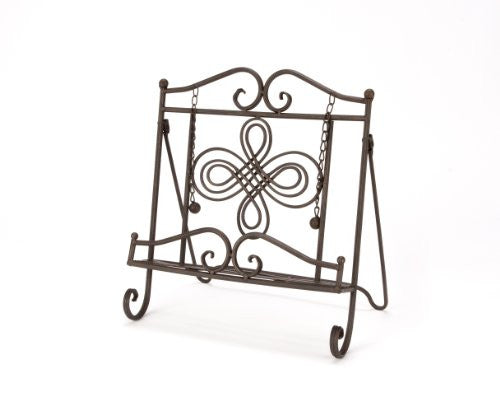 Antique metal swirl design Cookbook stand with metal weights for hands free cooking.
