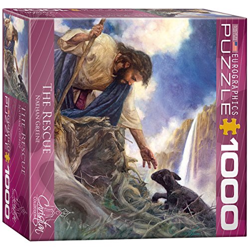 Euro Graphics The Rescue by Nathan Greene Box size: 8" x 8" x 2.37" Finished Size: 19.25" x 26.5" In the poignant parable of the lost sheep Jesus said: "What man among you, if he has a hundred sheep and has lost one of them, does not leave the ninety-nine in the open pasture and go after the one which was lost, until he finds it?" ( Luke 15:4 ) Finished Size: 19.25" x 26.5".