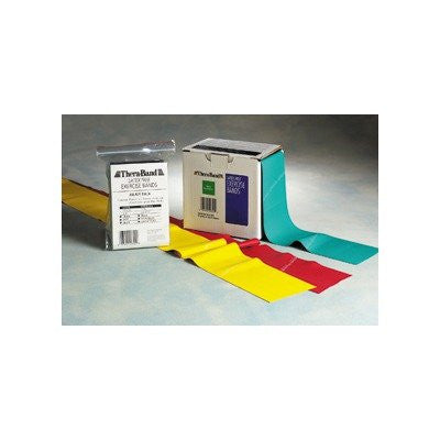 Ideal for building upper and lower body strength for rehabilitation or fitness. Whether building strength after shoulder or knee surgery or improving athletic performance, our bands, tubing and corresponding resistance exercise programs can be easily and economically used for any exercise program. The progressive resistance of our products parallels the basic concepts of building strength and mobility. As each level is mastered, the resistance can be increased with ability. In general, tan and yellow are used for early rehabilitation or very frail individuals. The most common resistances are red, green & blue. Black, silver and gold are typically used by athletes. The use of elastic resistance rather than weight-bearing exercises minimizes pressure on the joints and decreases the possibility of incurring other injuries. They can be used while traveling, sitting at home or even in the office. Uses for the Thera-Band Bands include: exercise, gym, balance, fitness, birthing, yoga, pilates, and stability and resistance.