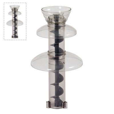 Includes crown, top tier, bottom tier, both cylinder pieces and the auger. Three sleeves on cylinder. Dishwasher safe. Fits on 16 in. select home fondue fountain. Made from food grade high impact plastic. Minimal assembly required