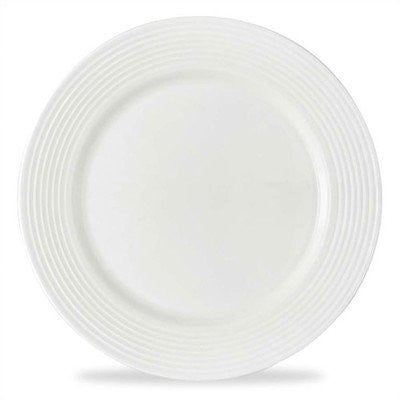 6376024 Color: White Features: -Microwave safe. -Material: Bone china. -Cleaning and Care: Dishwasher safe. -Tin Can Alley Collection. Material: -China. Pattern: -Color band. Dimensions: Overall Width - Side to Side: -9". Overall Depth - Front to Back: -9". Overall Product Weight: -1.05 lbs.
