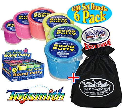 Toysmith High Bounce Boing Putty Complete Gift Set Party Bundle with Exclusive "Matty's Toy Stop" Storage Bag - 6 Pack