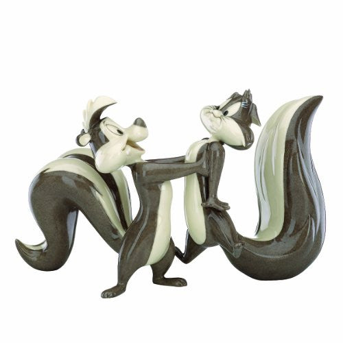 DescriptionLenox Vive L 'Amour. PEPÉ LE PEW demonstrates "Le Pursuit." PEPÉ LE PEW only sees les femmes in shades of black and white. That's why this debonair skunk with the French accent is in hot pursuit of Penelope. This hand-painted vignette portrays everyone's favorite Casanova all-too-eagerly sweeping the surprised cat off her paws. Masterful artistry reveals le skunk de pew's flirtatious charm working its magic on Penelope. Though her pose shows her reluctance, her smile says she's finding him hard to resist.