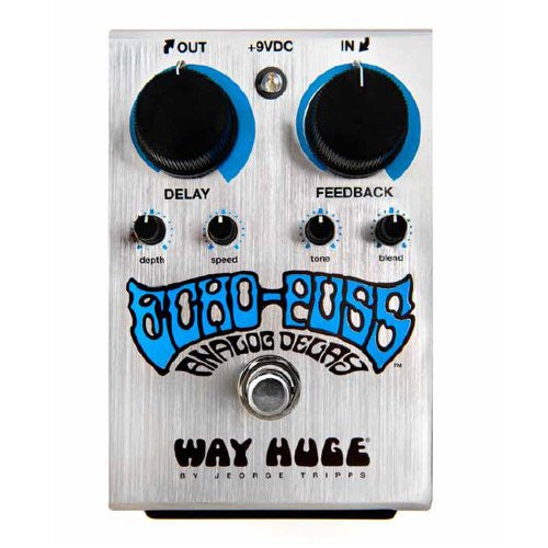 The Way Huge Echo-Puss was designed by delay expert Jeorge Tripps for players who want an organic analog delay pedal that allows them to fine-tune their delay sound with a simple user interface. It serves up 600ms of delay with a pair of gravelly-voiced bucket-brigade chips and a gain circuit pre-set for optimal signal output to add thickness and grit to your delay signal. Additionally, a fully tweakable LFO modulation circuit allows you to add a liquid texture to the sound of the repeats.
