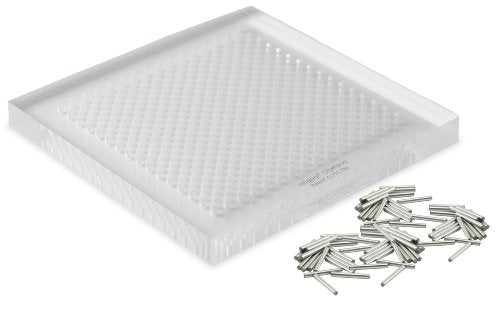 More options for making jig-style jewelry and accessories. This jig combines two pattern layouts with one jig, a half round and a square. Olympus Jig comes with 40 metal pegs. Holes and pegs are 3/32-Inch, all extra pegs on opposite page work with the Olympus. Patented and made in the USA.