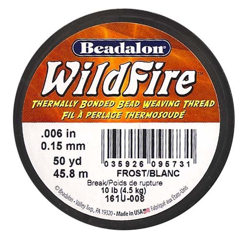 Frost Beadalon® WildFire beading thread. Thermally bonded beading thread that will not fray. 0.006 inch thick.