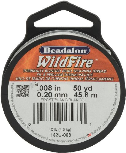 Perfect for all your bead weaving needs! WildFire beading thread is extra strong and durable. Thermally bonded coating, to create a superior stringing product that cannot be pierced with a needle. Super strong, waterproof, and zero-stretch, this cord will not fray at the ends which makes it easy to thread through a needle. This knottable, supple cord is also great for multi-strand seed bead designs using the Spin-N-Bead. 12 lbs breaking point. .008 Inch (.20mm) thickness. 50 Yards / 45.8 Meters.