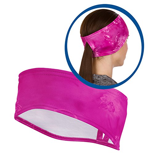 Keep your hair manageable in all conditions with TrailHeads Women's Print Ponytail Headband. It has a subtle opening at the back where your ponytail can slide through, making it ideal for many of your favorite outdoor activities. The two inch opening will accommodate most ponytails making it the perfect workout accessory for women with long hair. The slot opening also means you can easily wear this headband without a ponytail and it works well with short hairstyles to keep hair out of your face. This headband fits comfortably under a helmet, so it's the perfect accessory for skiing, horseback riding, motorcycle riding and other athletic activities. This hair accessory boasts a contoured style that fits well and feels soft against your skin. It's a one-size-fits-most running headband that stays in place while you move. It also features full ear coverage that protects your ears from the cold and keeps them warm throughout your workout. Thanks to its polyester/spandex material with a brushed interior, the Print Ponytail Headband is warm enough for moderate winter temperatures but lightweight enough for the fall and spring running seasons. Its moisture wicking properties draw sweat away from your head to keep you warm. Additionally, it's a low-maintenance accessory: machine wash, lay flat to dry. The 4-way stretch fabric ensures a snug but comfortable fit, and this ponytail headband measures 3" in the front and 4.5" over the ears. Designed and trail tested in Connecticut. Made in Massachusetts. Enjoyed worldwide. Available in a wide variety of fun and fashionable prints, this practical sports headband adds flair to your running and exercise wardrobe. Show off your individuality and style with TrailHeads Women's Print Ponytail Headband today!