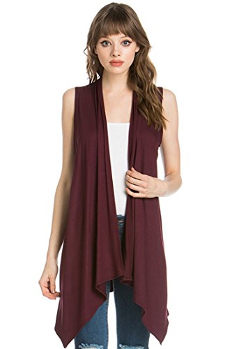 • Women’s Sleeveless Draped Open Front Asymmetric Wine Rose Vest Cardigan, Large