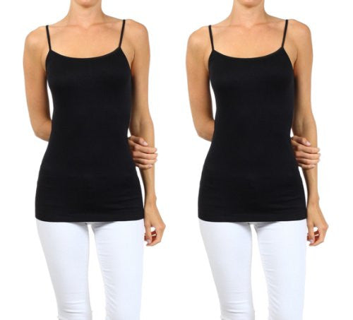 Yelete SeamlessTops with Spaghetti Strap - Black, Pack of 2