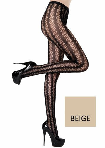 • Yelete Striped Coils Colored Fishnet Pantyhose - Queen - Beige