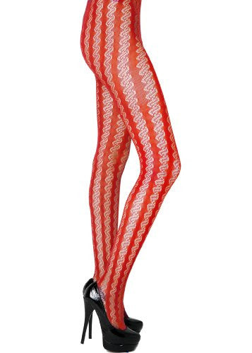 Yelete Striped Coils Colored Fishnet Pantyhose - Red