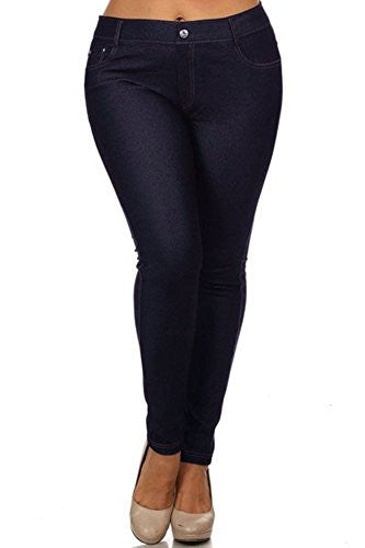 Yelete Women's Basic Five Pocket Stretch Jegging Tights Pants 2XL Navy Blue