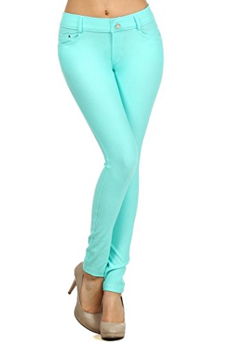 • Yelete Womens Cotton Blend Pull On Color Jeggings (Turquoise, Small)
